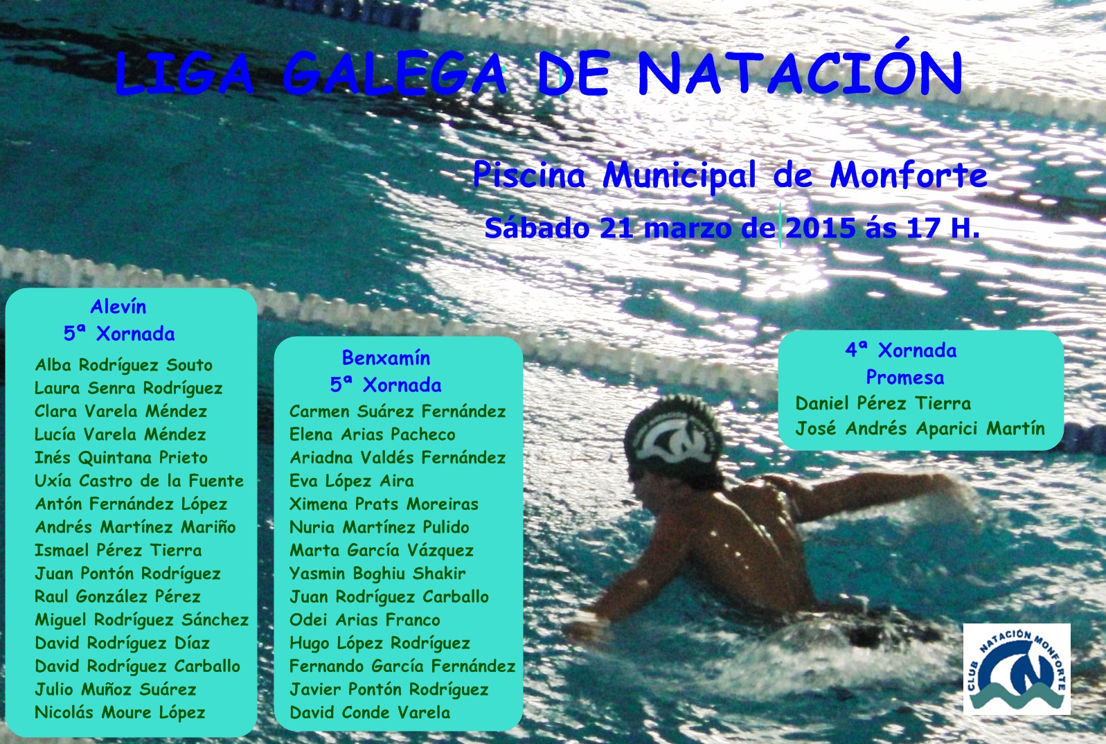 Convocatorias, UncategorizedLiga Gallega de Natación Alevín, Benjamín, Promesa. 26 marzo, 201526 marzo, 2015 Club Natación Monforte Sábado 21 en la Piscina Municipal de Monforte: Convocatoria 5ª jornada de liga Alevín-Benjamin. 4ª promesa Alevines-Benjamines-Promesa Publicado por Club Natación Monforte Ver todas las entradas de Club Natación Monforte