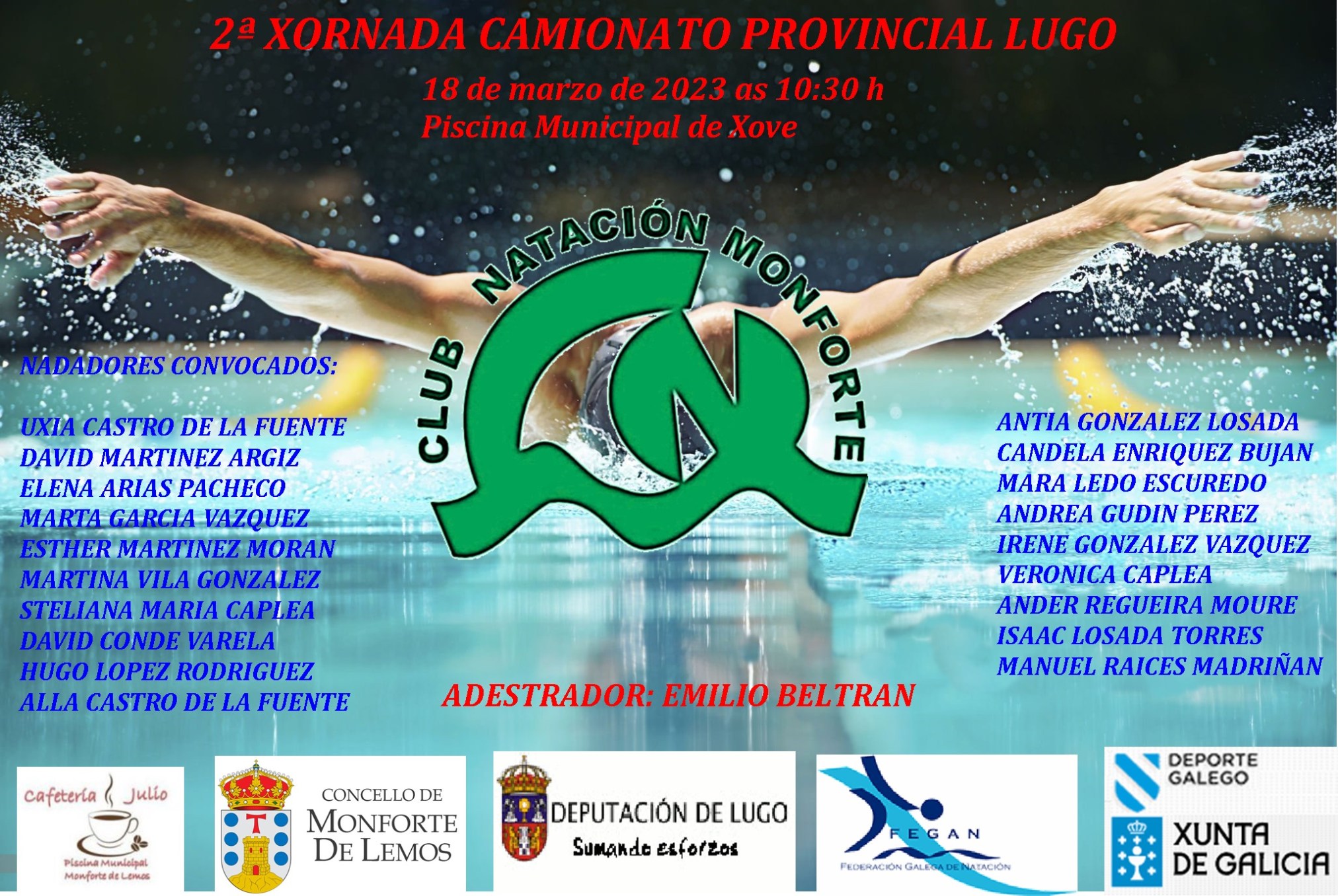 Sábado 18 de marzo de 2023 as 10:30, na piscina municipal de Xove.