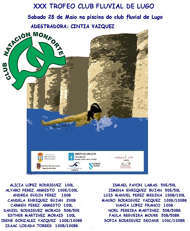 Sabado 28 de maio de 2022 na piscina do Club Fluvial de Lugo as 10:30 h.