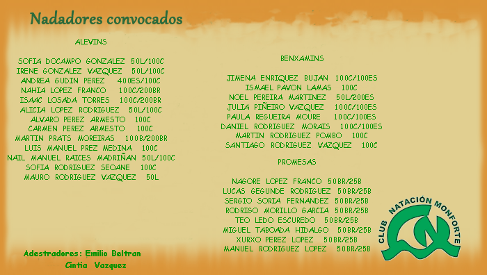 Sabado 21 de maio de 2022 as 11:00 h. , Piscina Municipal de Monforte.